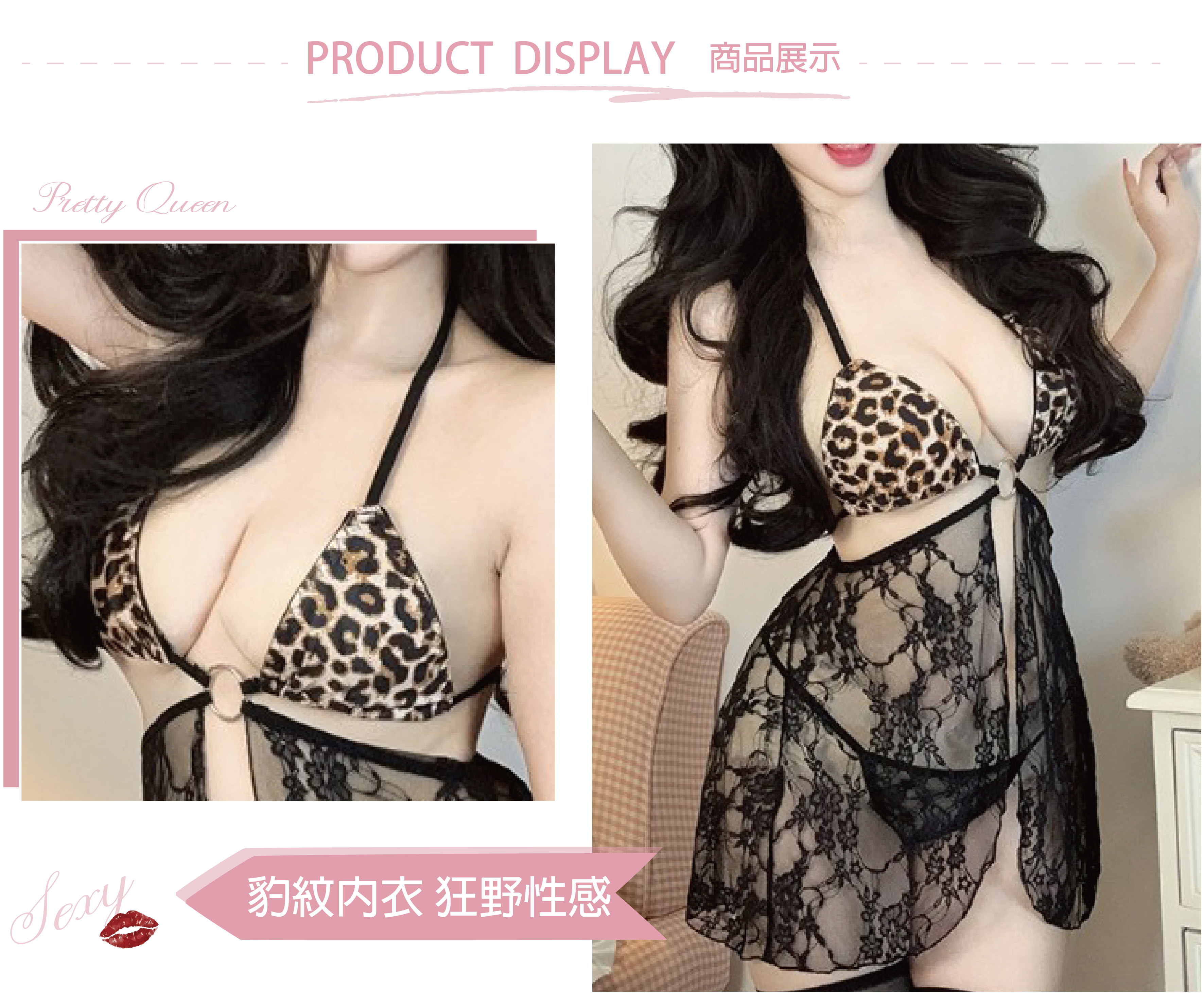 勾魂夜曲 |拼接豹紋蕾絲連身睡裙