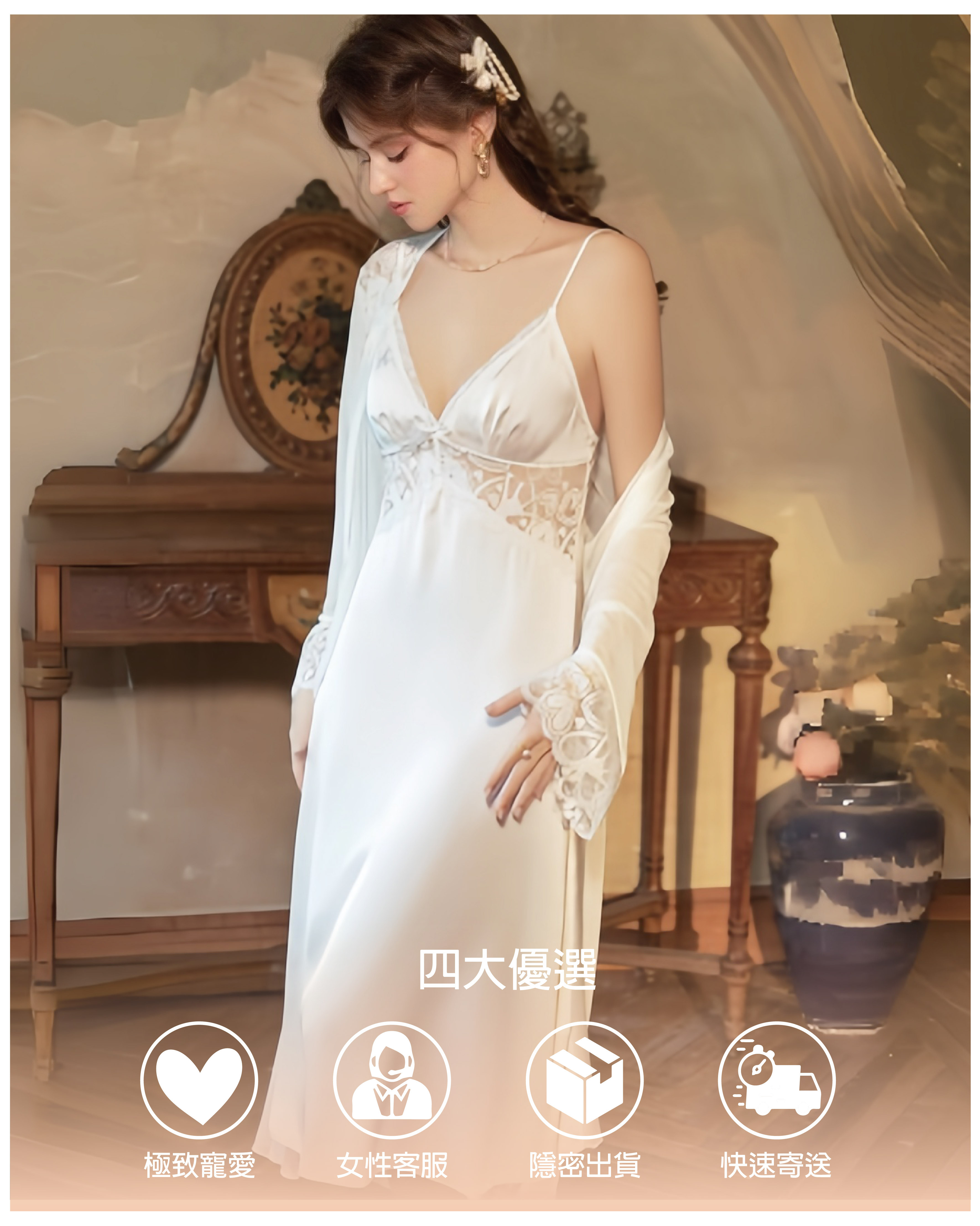 在逃公主|法式長裙連身睡裙+外袍