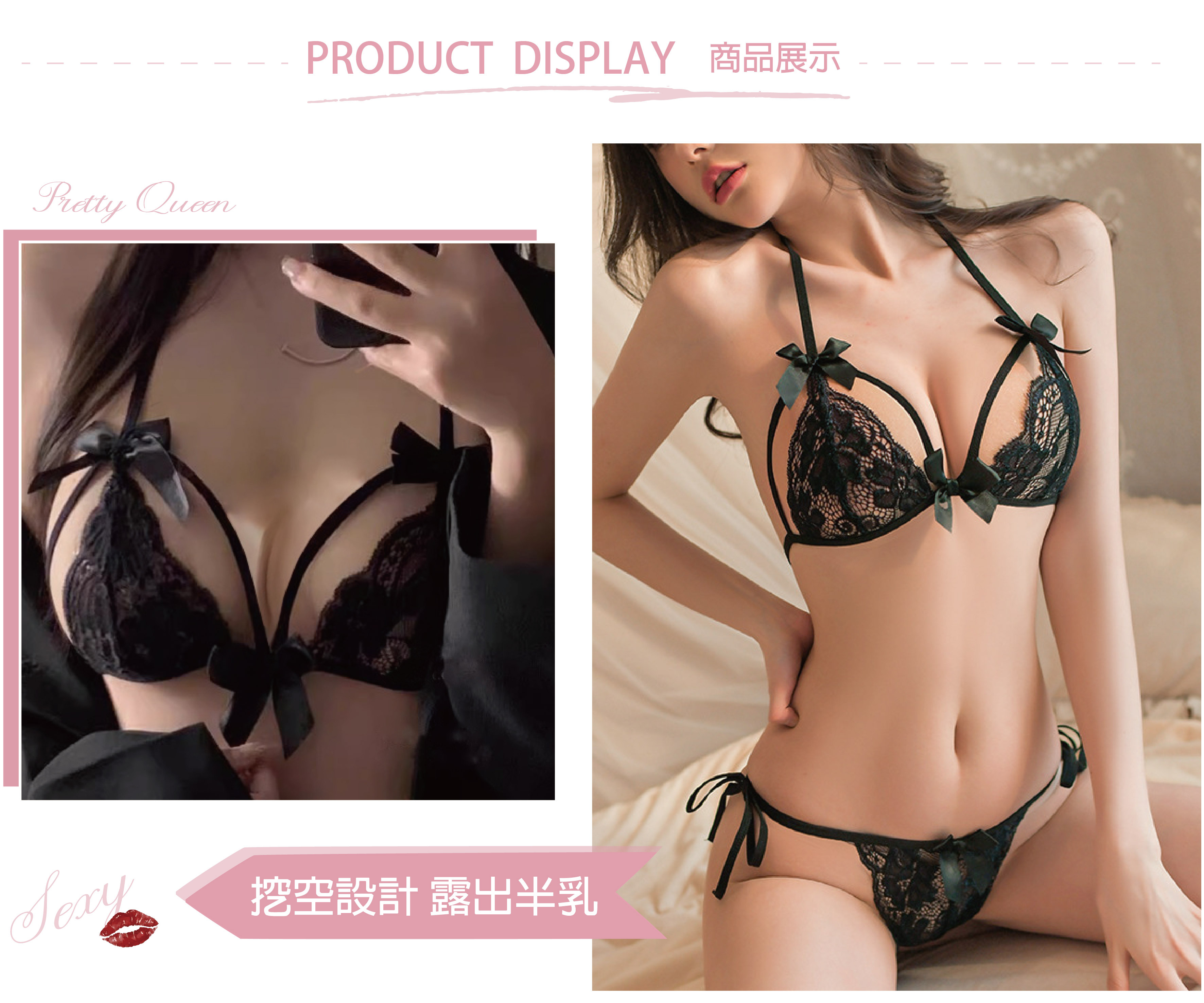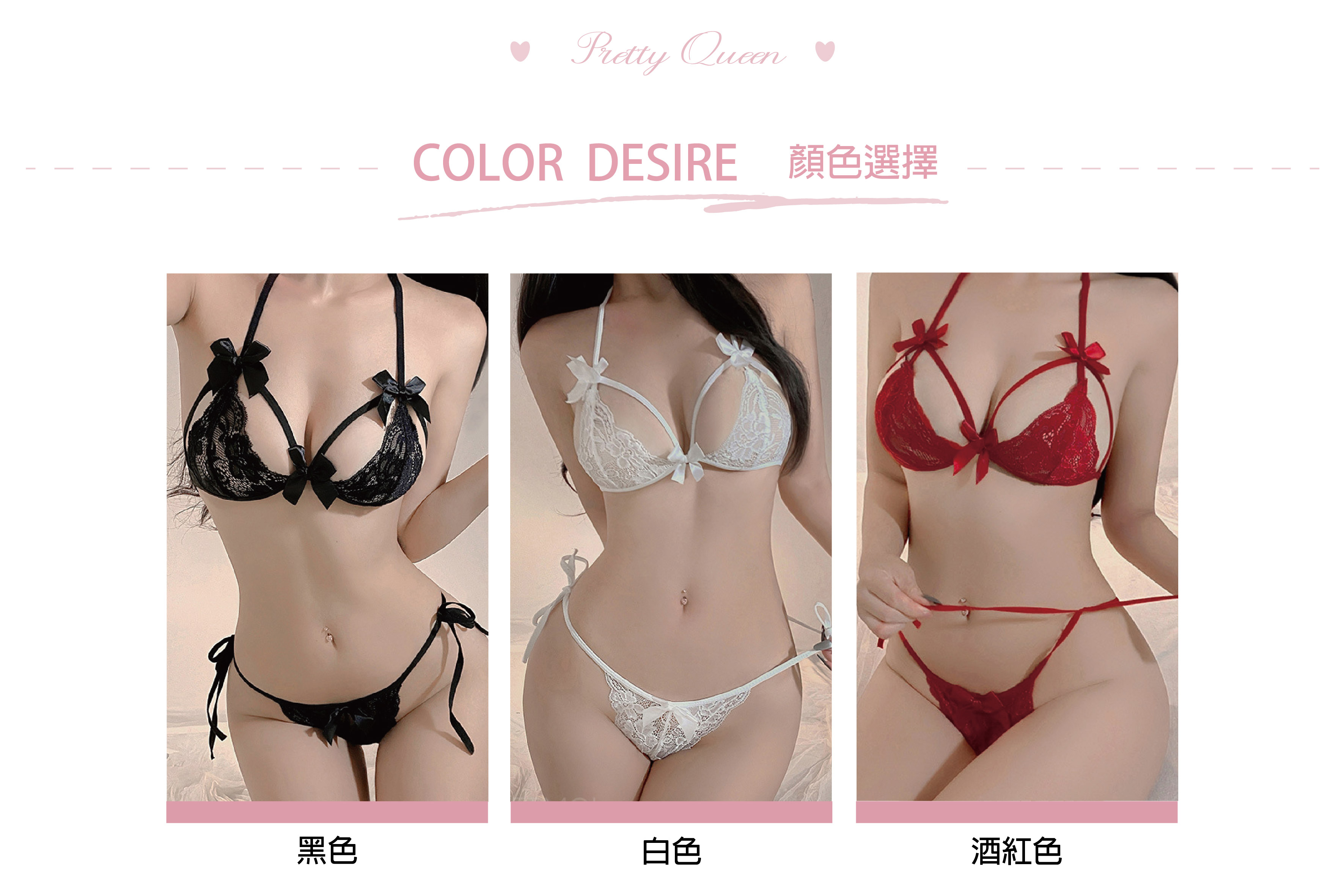 蝴蝶結蕾絲內衣|三點式性感內衣