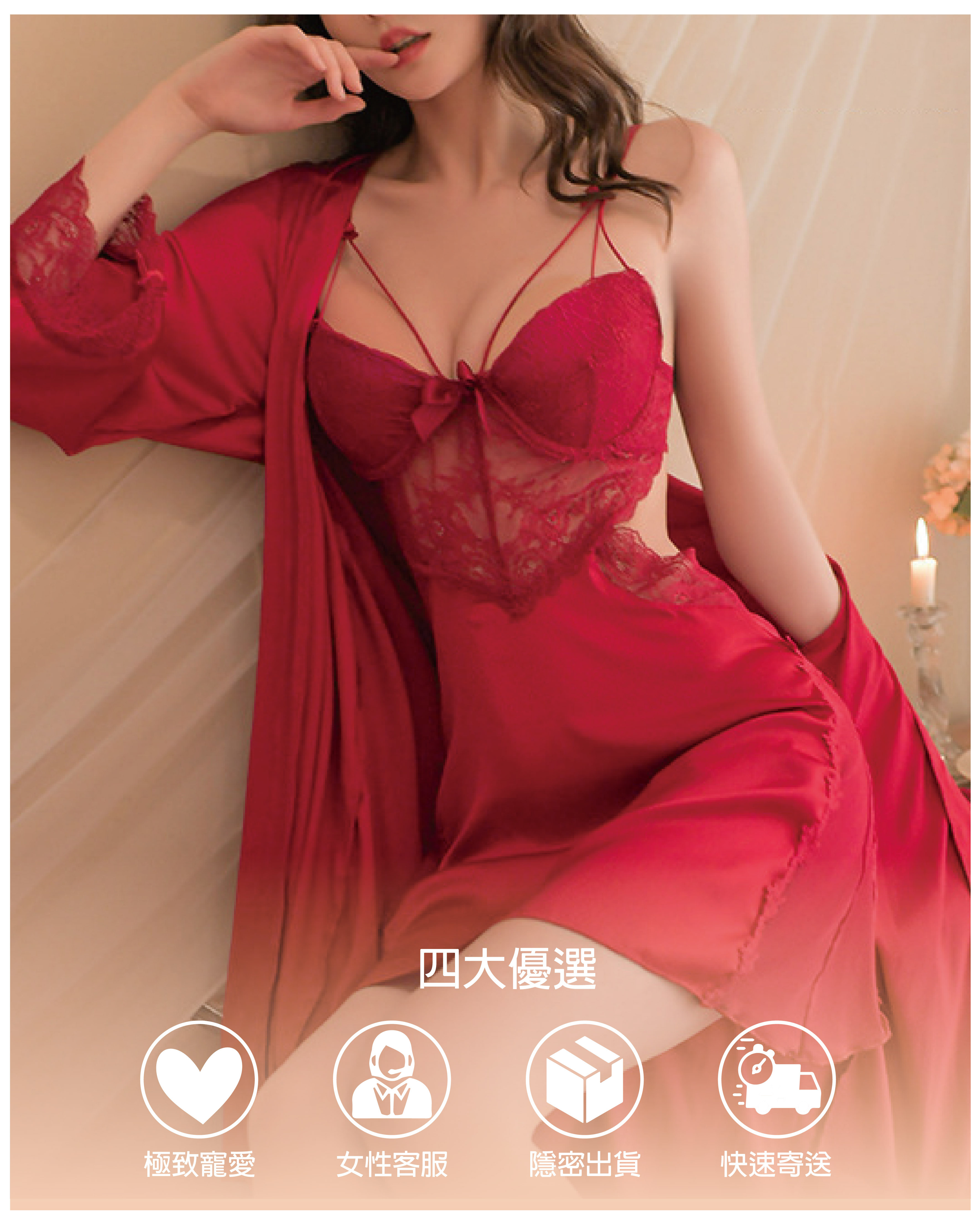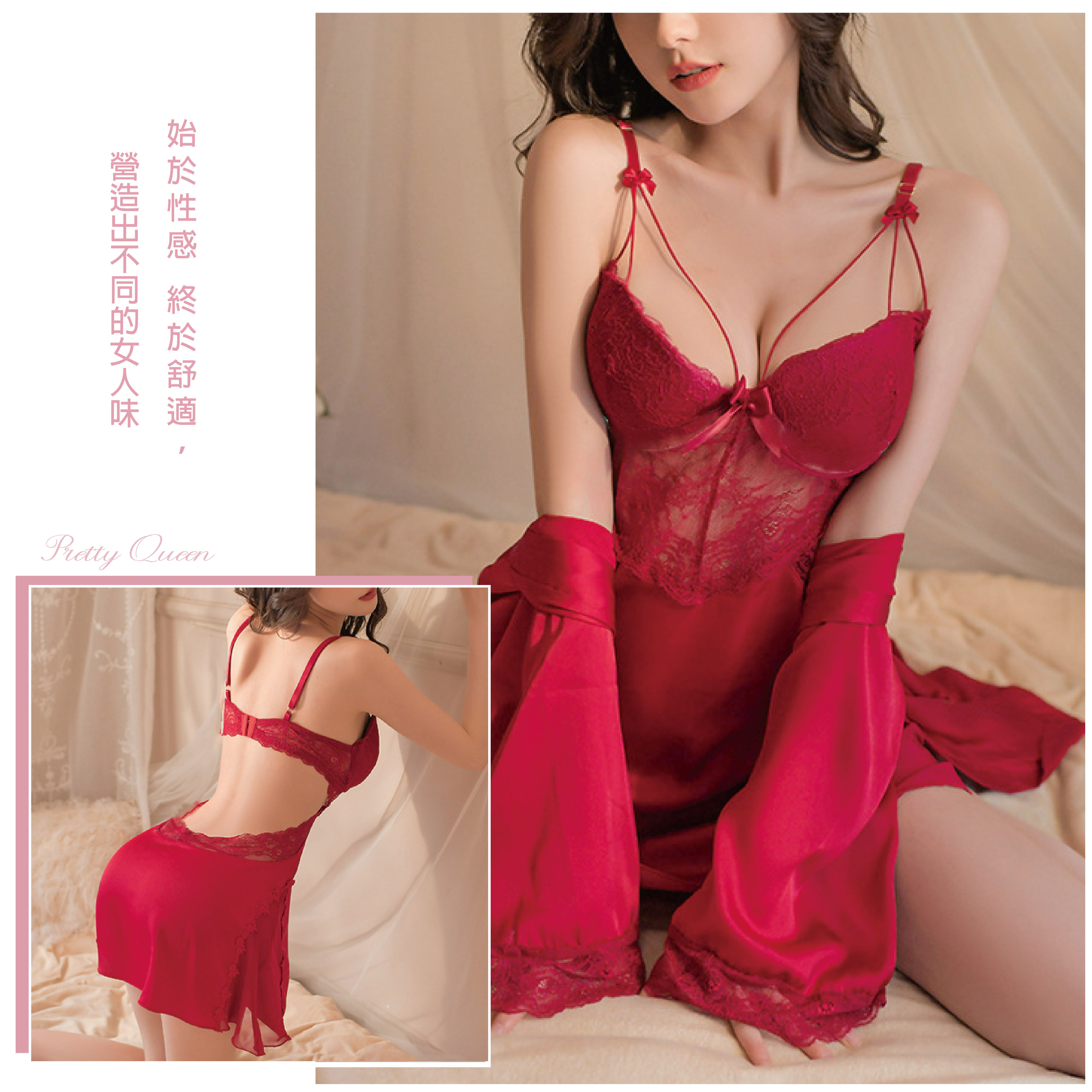 浪漫巴黎 |法式鋼圈連身睡裙+外袍