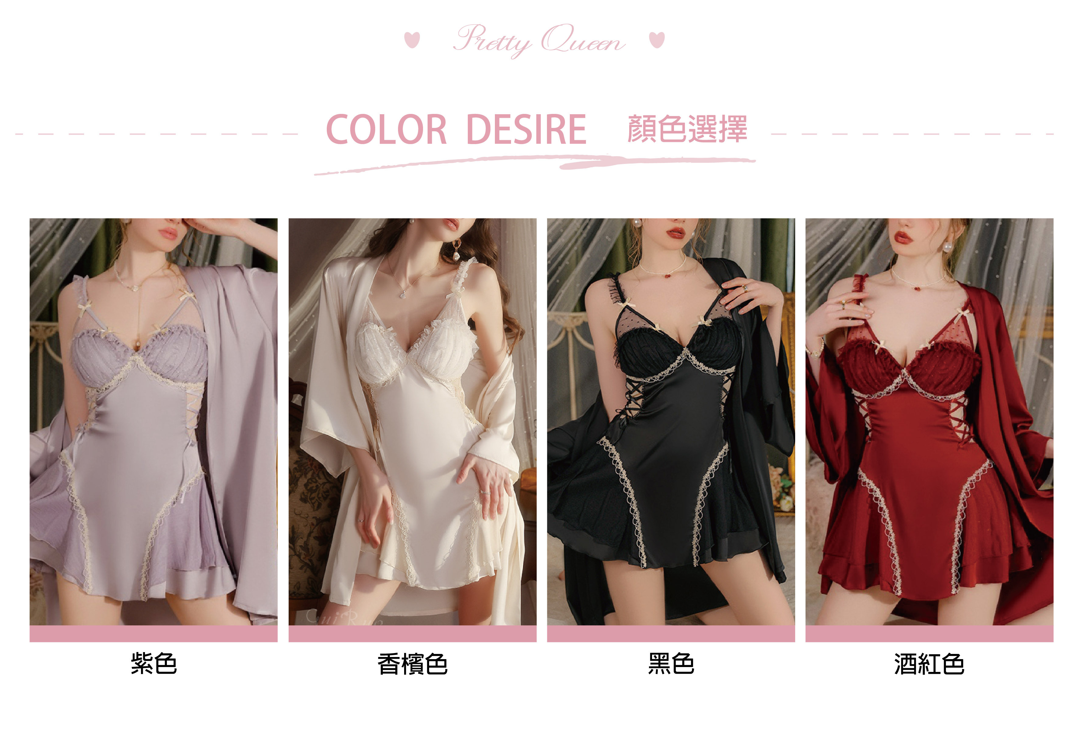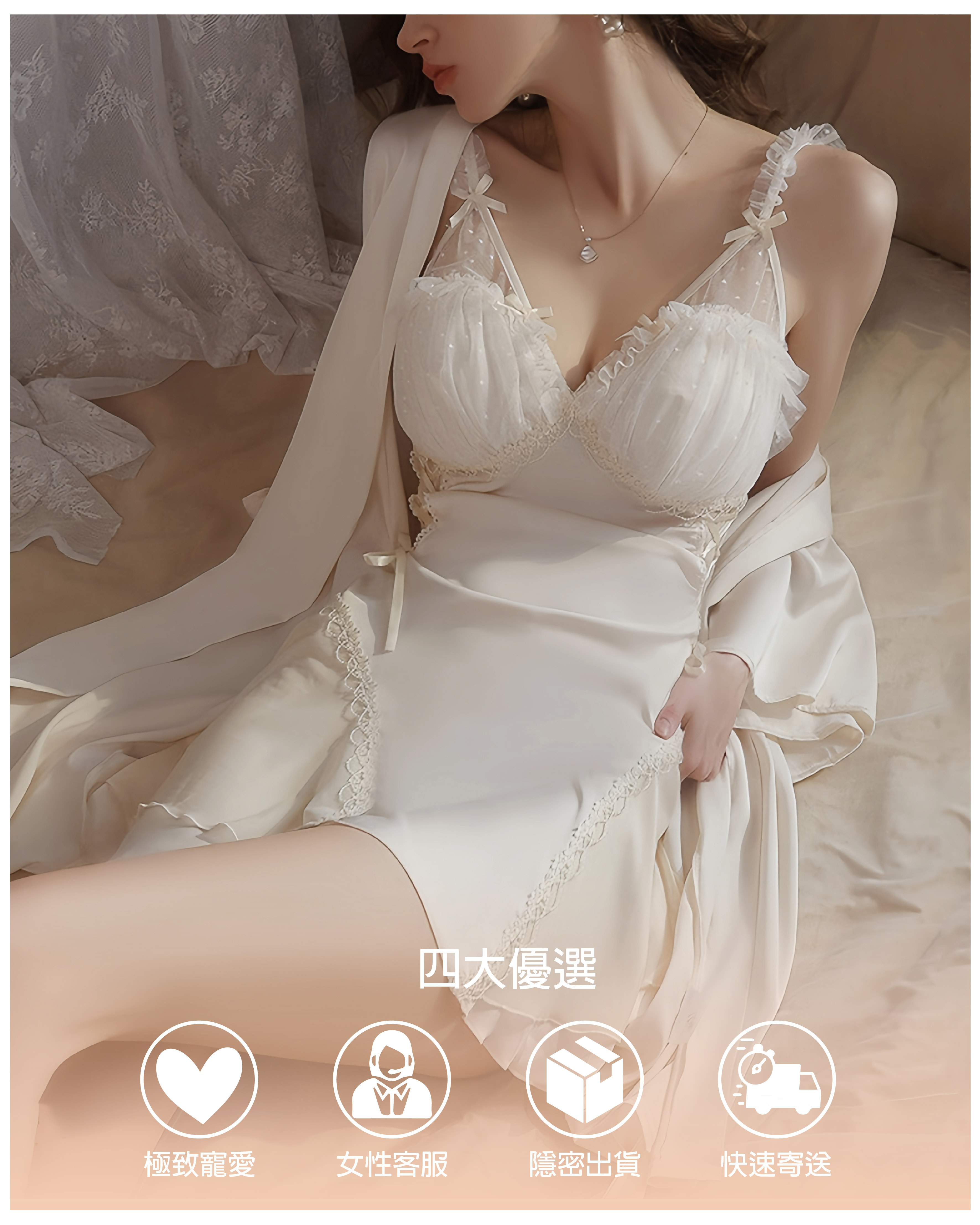溫柔夜曲 |高級法式連身睡裙+外袍