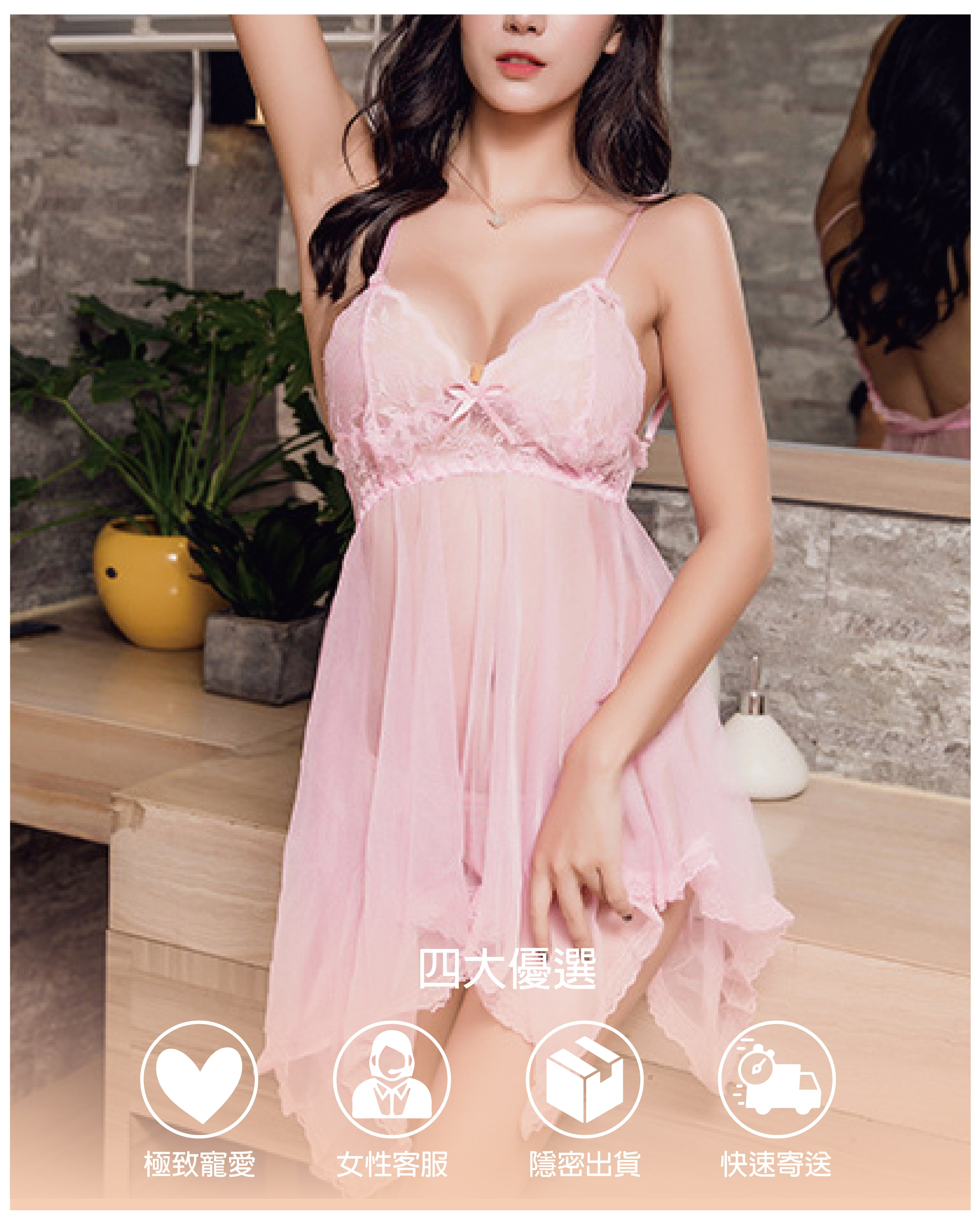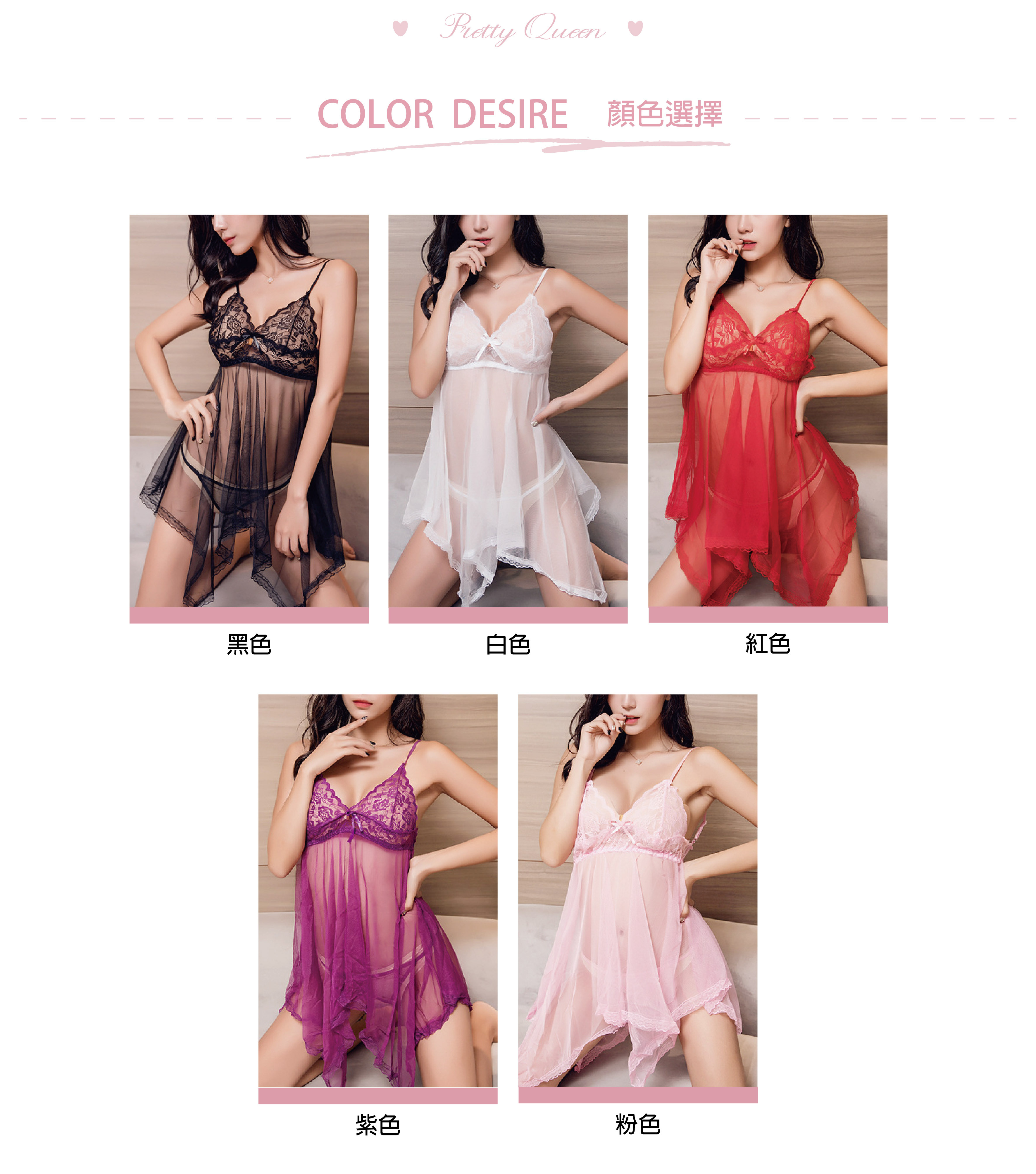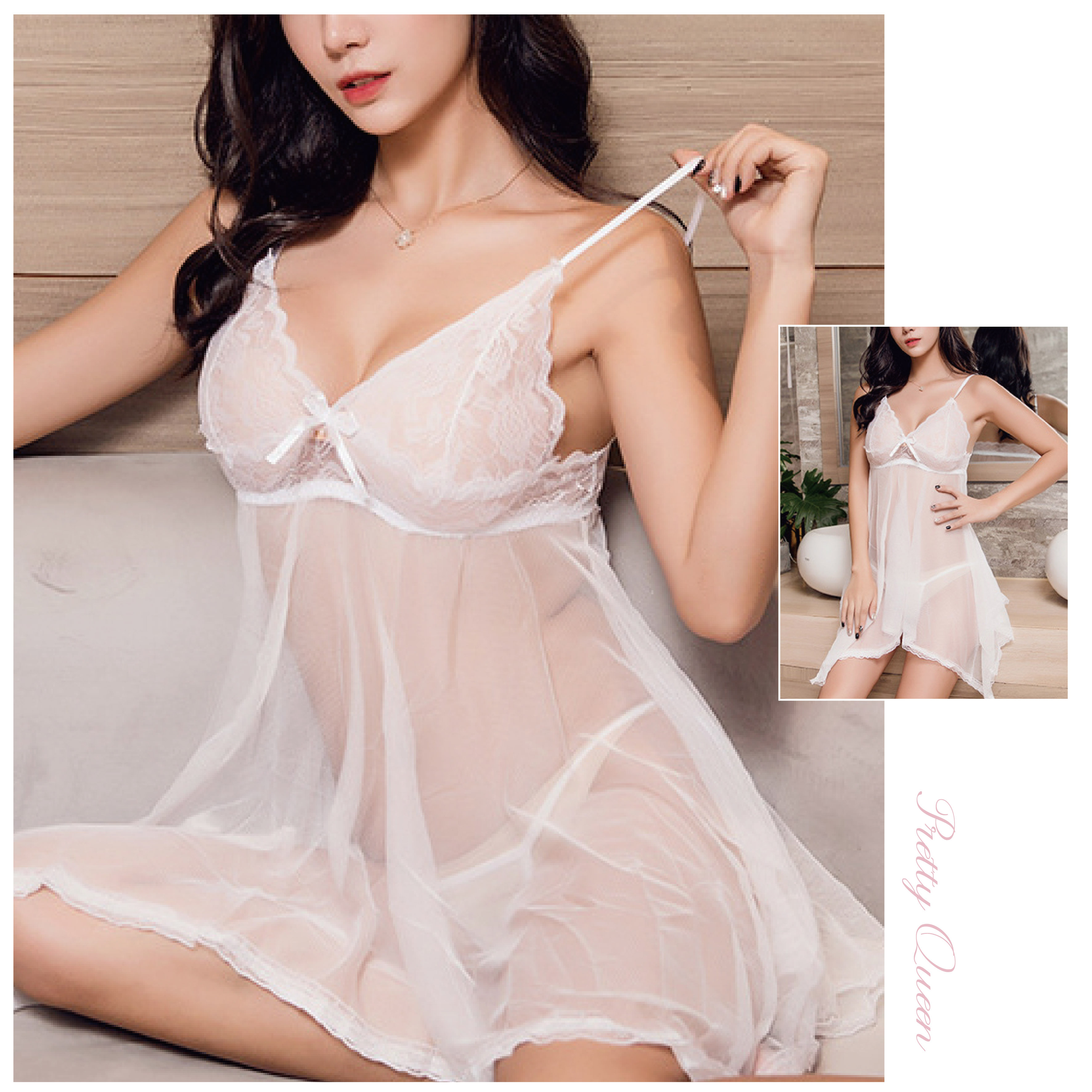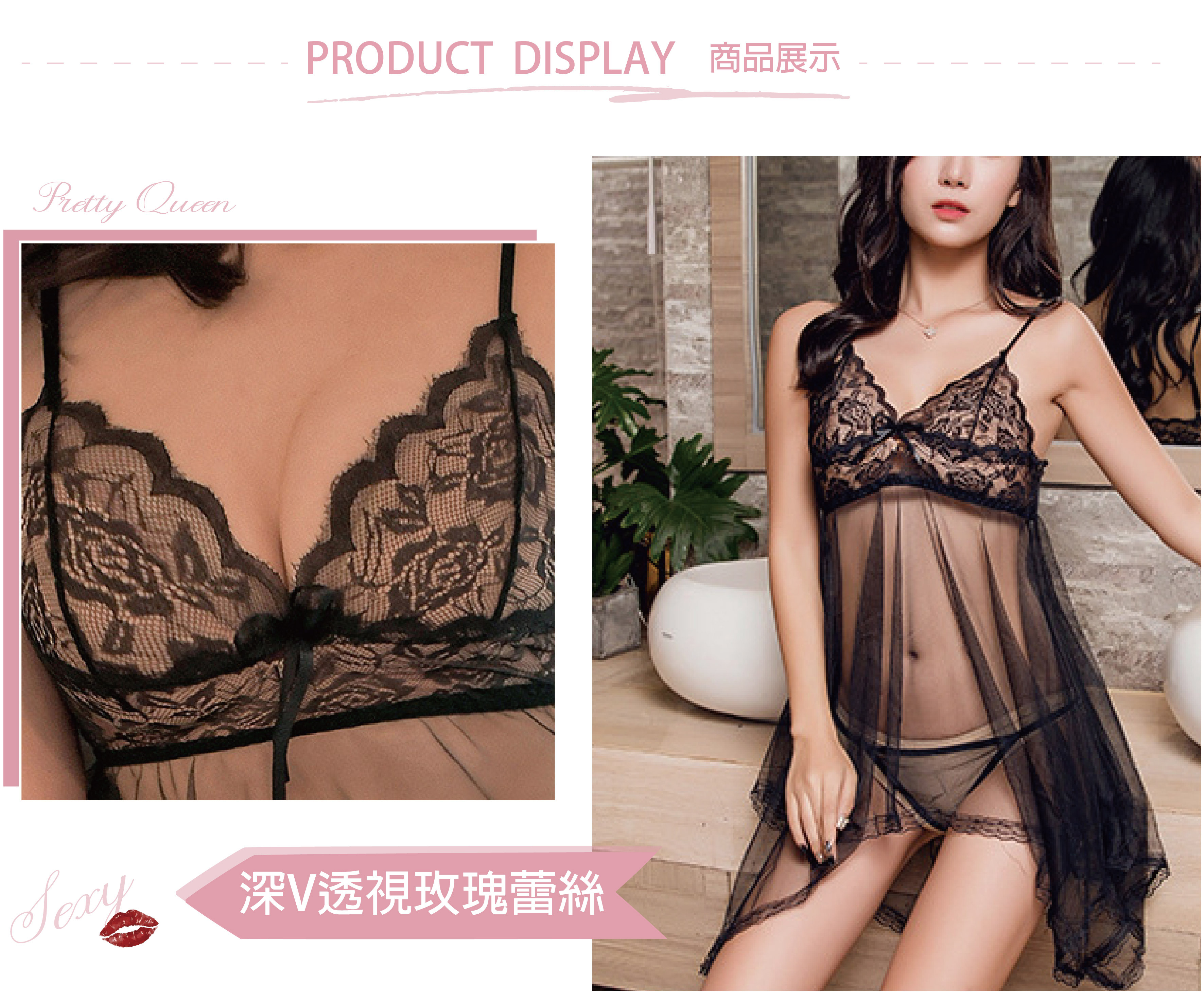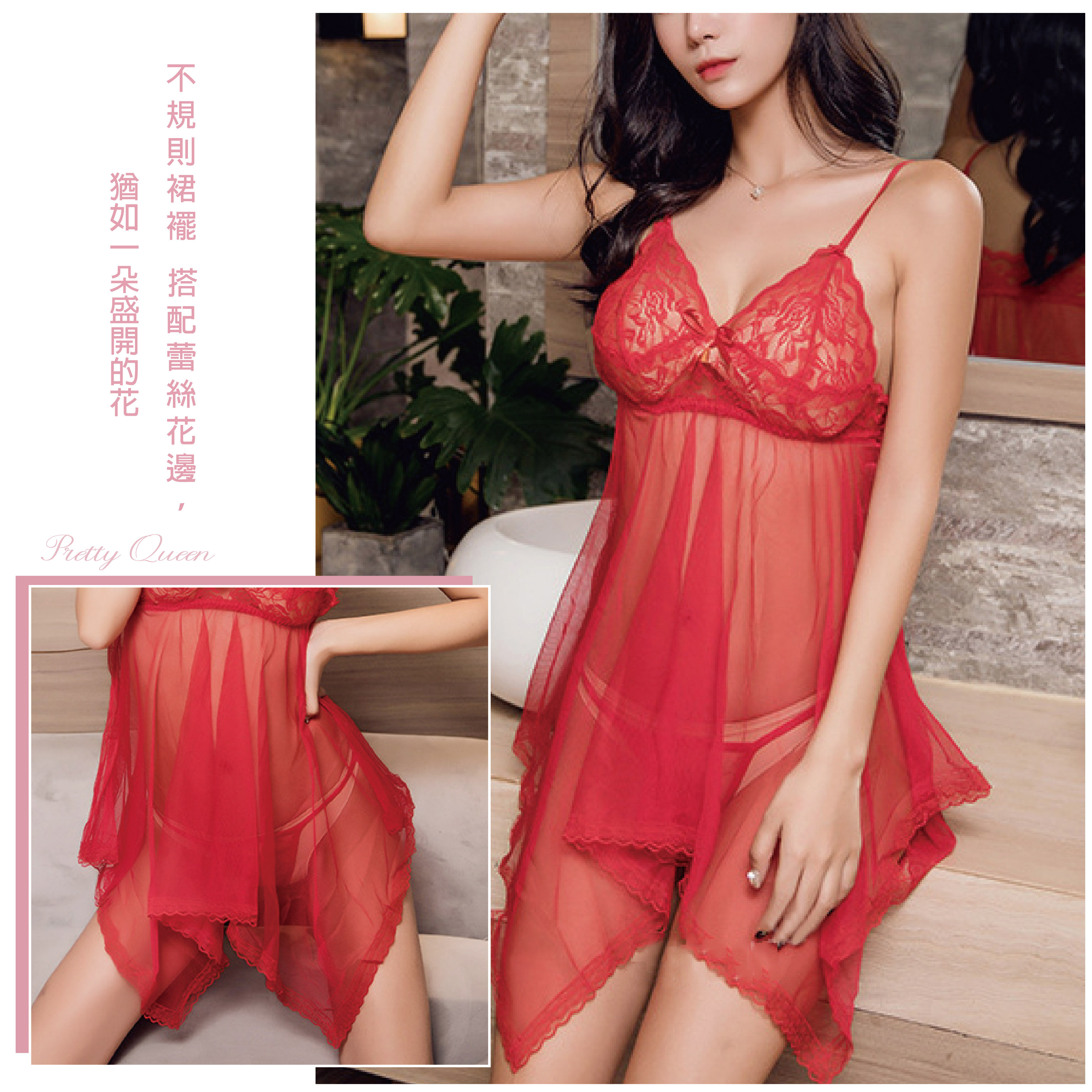 玫瑰輕紗 |蕾絲透視連身睡裙