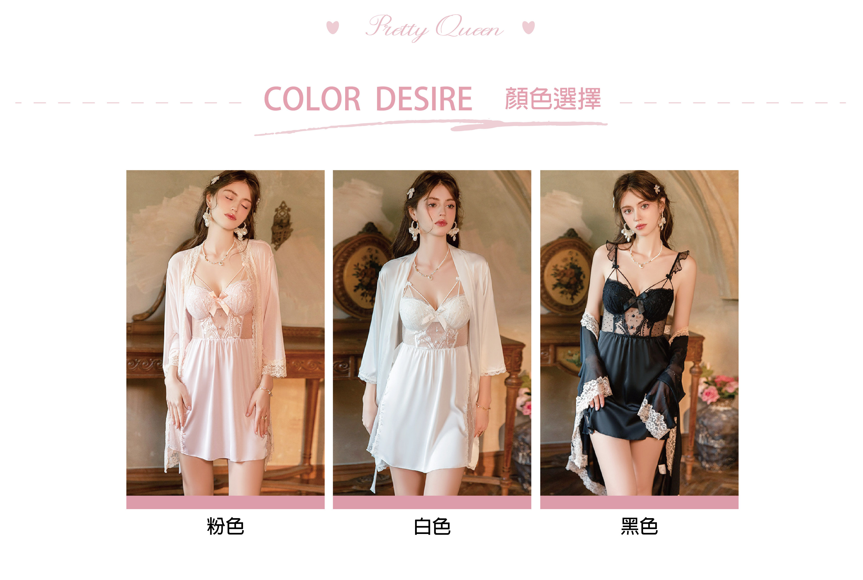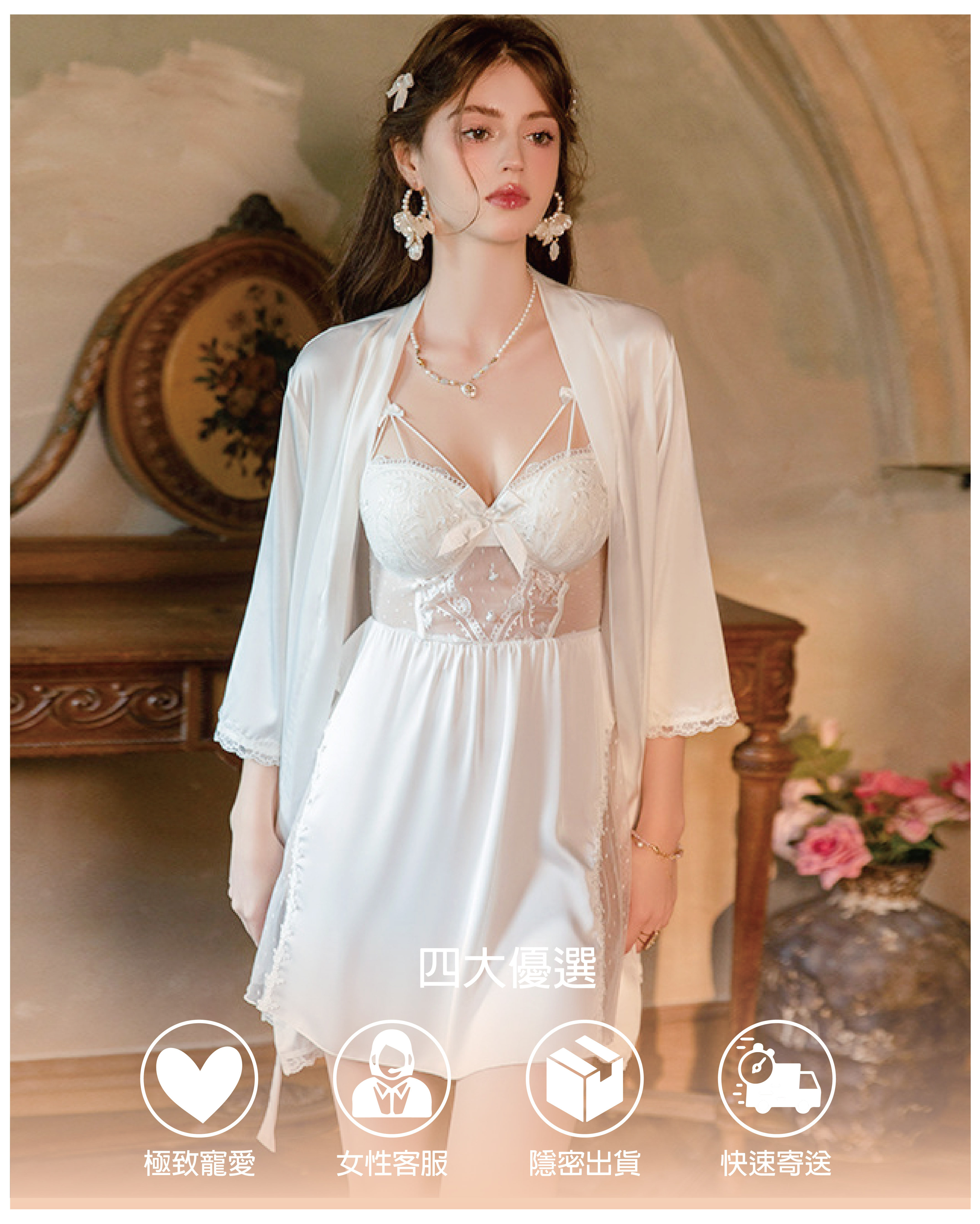 珠光美人|珍珠排釦連身睡裙+外袍
