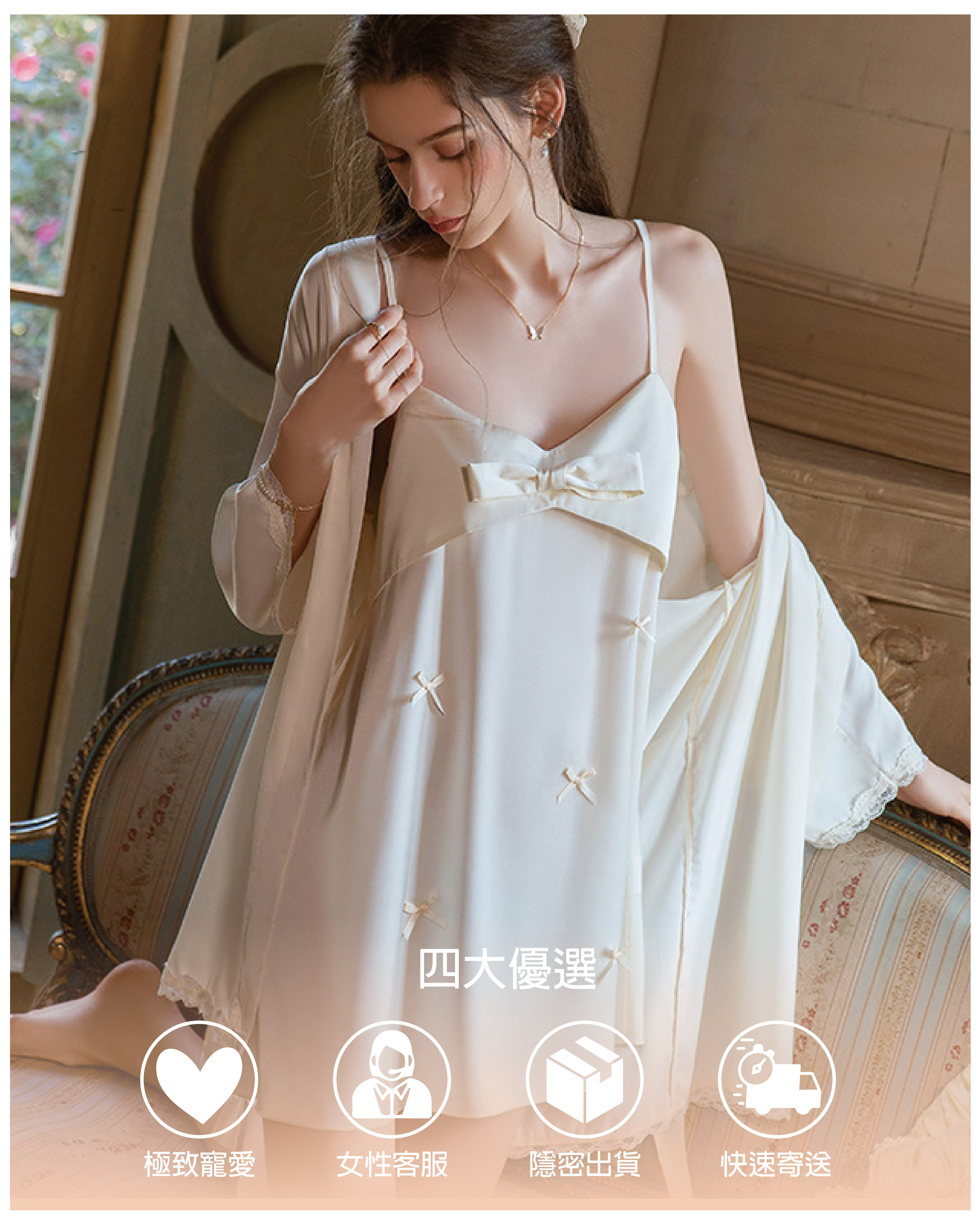 結伴一生|蝴蝶結連身睡裙+外袍