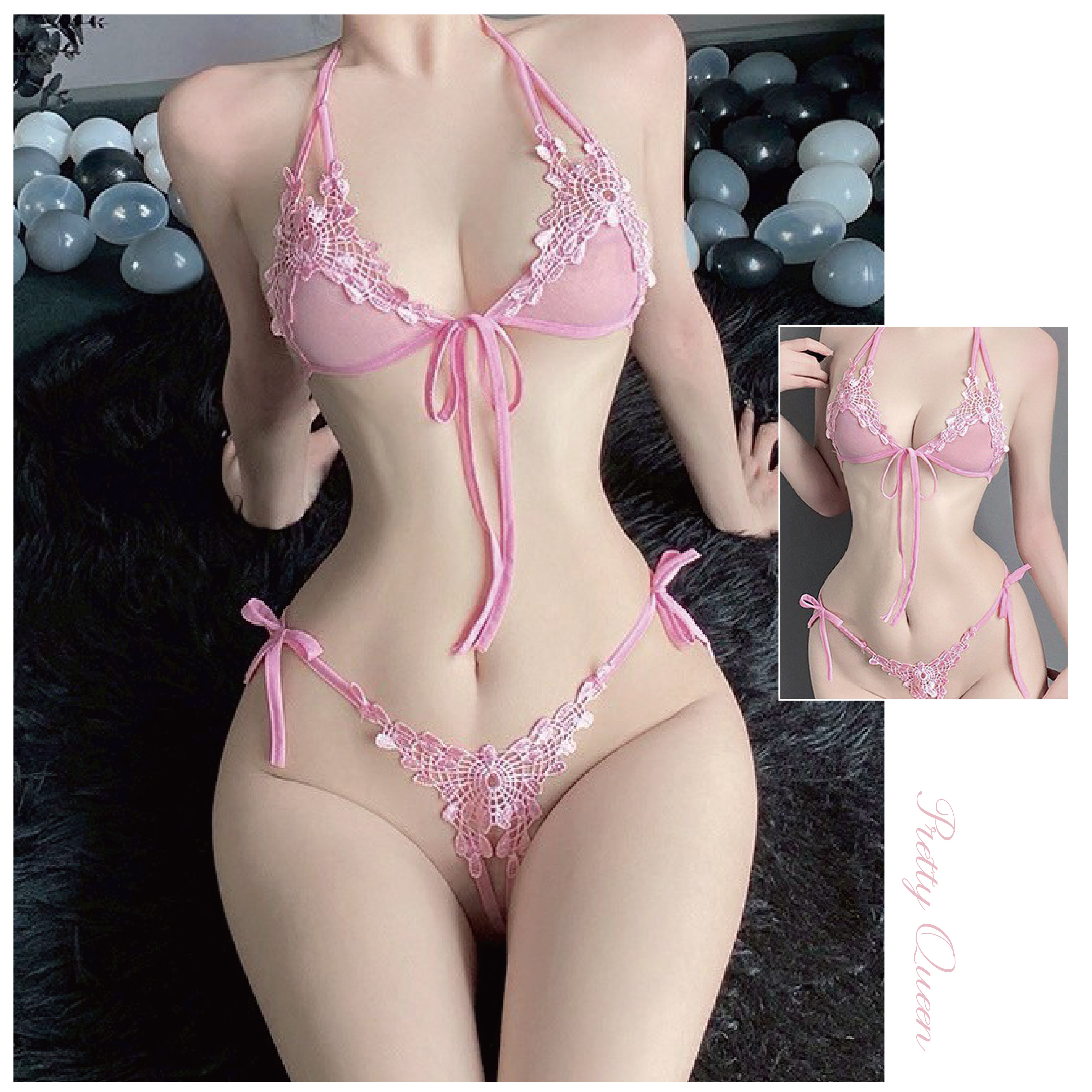 花蔓蕾絲內衣|情趣開檔三點式內衣