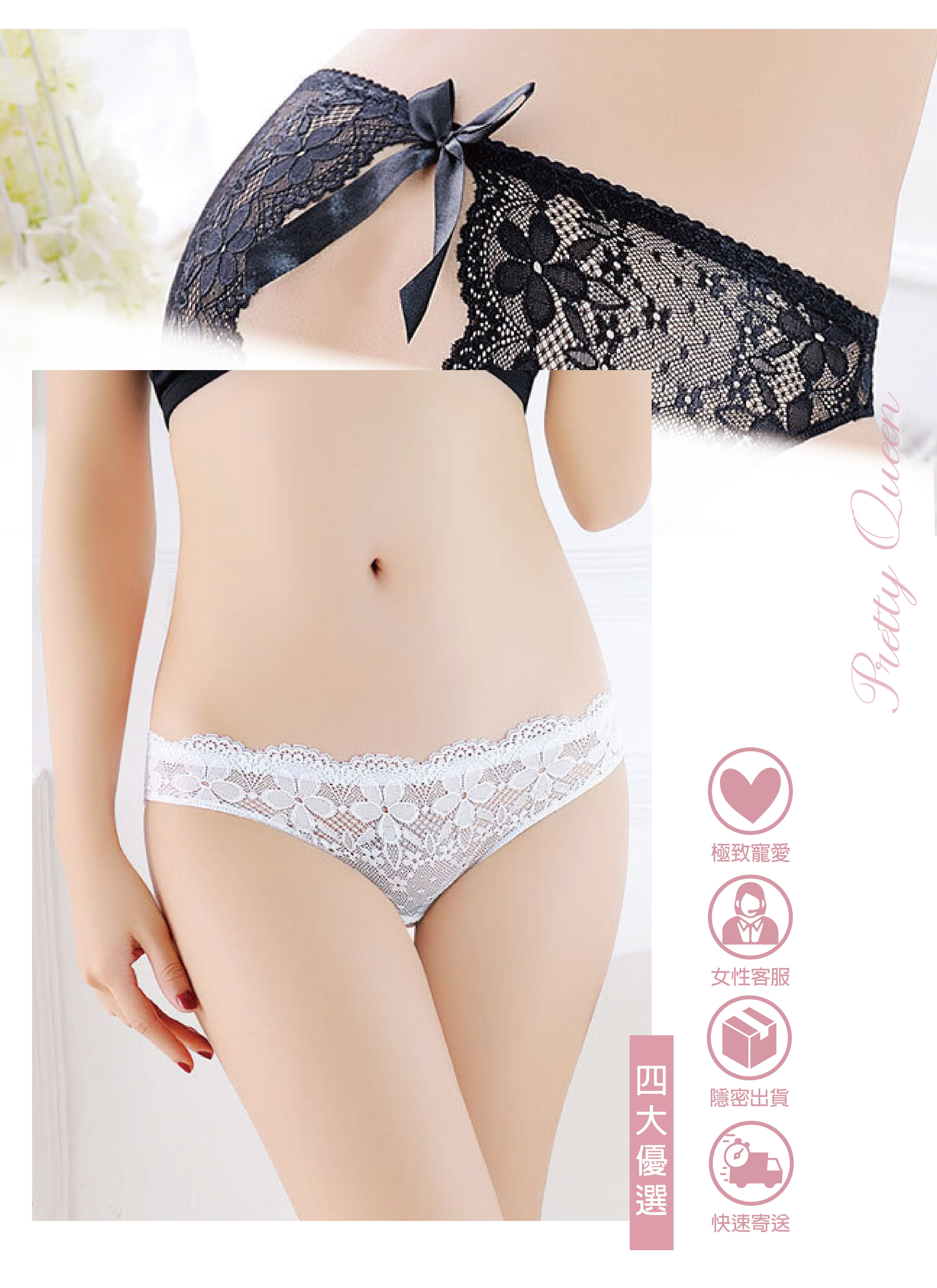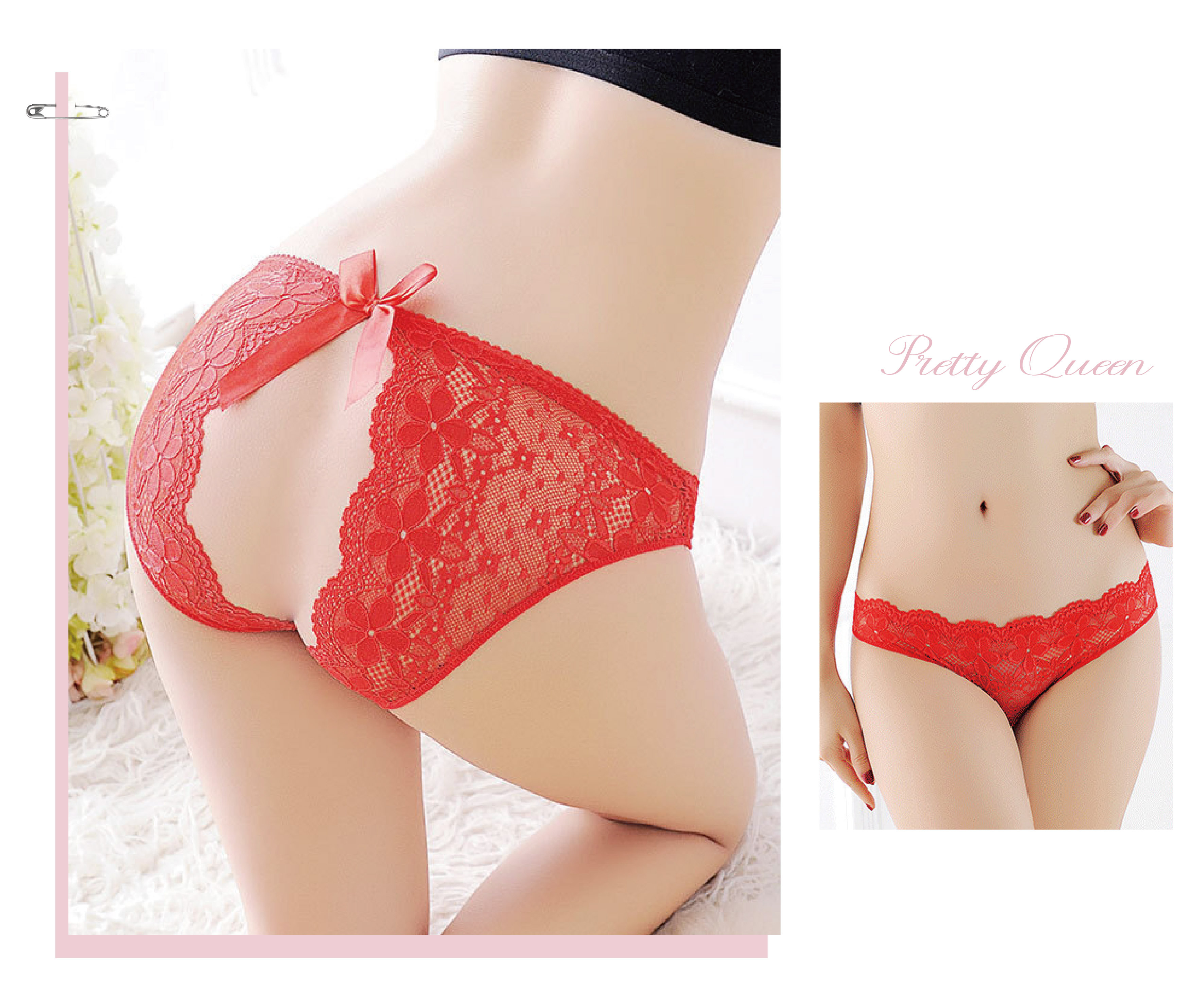 蝴蝶結開檔花邊內褲